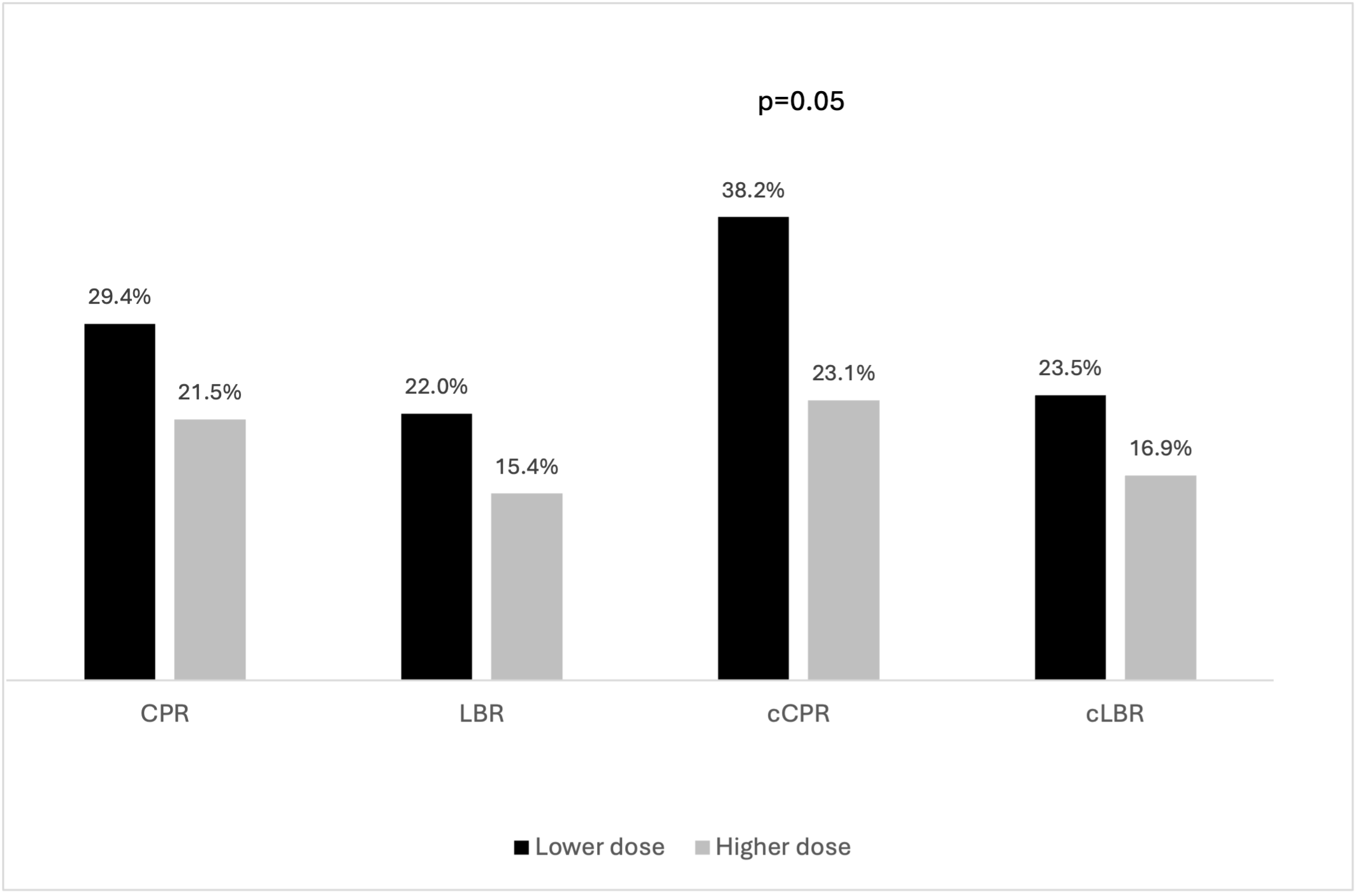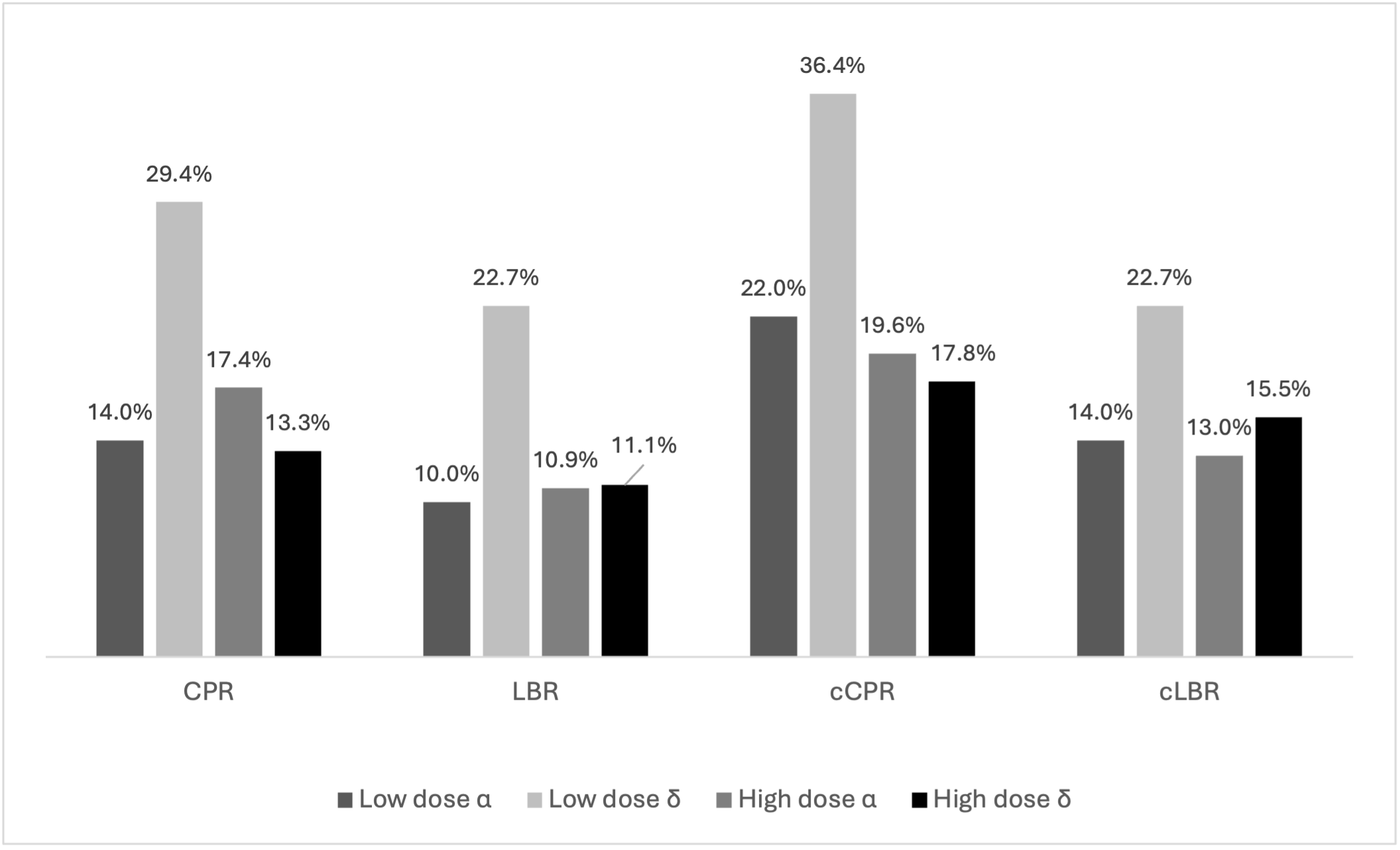 In conclusion, our findings suggest that a modest dose increase does not improve outcomes, raising questions about the utility of more aggressive dosing protocols. The administration of a more modest dose is likely to be associated with significant cost savings without compromising outcomes though proper cost-effectiveness analysis has to be part of future trials. Given the noted differences in cCPR, studies to assess the impact of newer gonadotropins including follitropin-δ should be considered in expected poor responder women undergoing IVF. These findings support current evidence-based guidelines recommending against routine high-dose protocols, though definitive conclusions require confirmation in adequately powered studies.